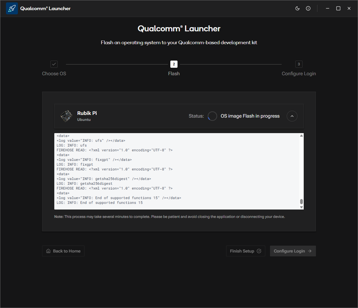 Qualcomm® Launcher is a user-friendly, GUI-based tool designed to simplify the process of downloading and flashing operating systems onto Qualcomm®-based development kits. This section provides step-by-step guidance to flash the Renesas USB firmware and replace the existing OS with a certified Canonical Ubuntu 24.04 server image.